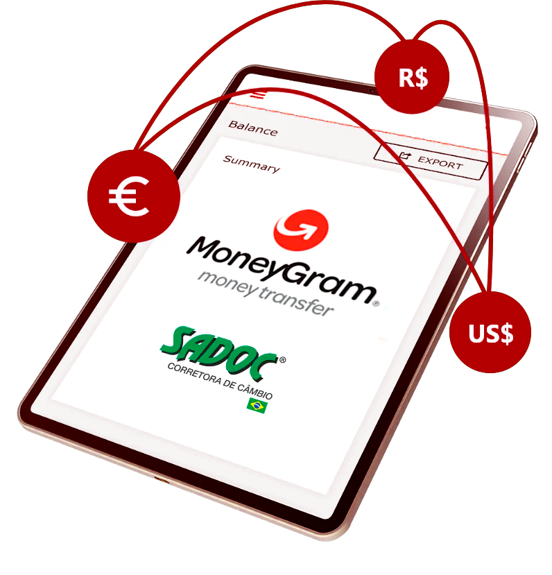 Envie ou receba dinheiro do exterior sem necessidade de ter conta bancária no exterior Envios para mais de 190 países. Envie ou receba dinheiro do exterior sem necessidade de ter conta bancária no exterior, envios para mais de 190 países. Veja como é fácil enviar dinheiro ao exterior com a MoneyGram Envie ou receba pelo WhatsApp de qualquer lugar do Brasil, ou com um especialista em uma de nossas lojas físicas. Conte com segurança e suporte especializado para enviar ou receber seu dinheiro do exterior. Faça o seu cadastro conosco São aceitos: Passaporte, CNH, RG ou RNE. Envie sua foto pelo WhatsApp ou apresente em uma de nossas lojas físicas. Escolha o país, moeda e valor a ser enviado Informe também a sua profissão para continuar com a operação. Dados do beneficiário e o motivo do envio Coloque os dados de quem receberá o dinheiro e o motivo do seu envio. Coloque os dados de quem receberá o dinheiro e o motivo do seu envio. Realize o pagamento via TED ou PIX e aguarde a confirmação Para a retirada do valor, é importante ter em mãos o número de referência e um documento com foto no exterior. Você também pode receber dinheiro do exterior com a MoneyGram Valor e número de referência Conte com segurança e suporte especializado para enviar ou receber seu dinheiro do exterior. Vá a uma de nossas lojas ou entre em contato via whatsapp São aceitos: Passaporte, CNH, RG ou RNE. Envie sua foto pelo WhatsApp ou apresente em uma de nossas lojas físicas. Apresente seu documento com foto ou envie pelo WhatsApp Lembrando que deve ser um documento com foto: Passaporte, CNH, RG ou RNE. Dados do beneficiário e o motivo do envio Coloque os dados de quem receberá o dinheiro e o motivo do seu envio. Coloque os dados de quem receberá o dinheiro e o motivo do seu envio. Tem um amigo ou familiar que precisa enviar ou receber dinheiro do exterior sem conta bancária e em poucos minutos? Compre onde você preferir Você também pode enviar ou receber dinheiro com MoneyGram em qualquer uma de Nossas Lojas ou então por meio da nossa Mesa de Operações: chat, e-mail, telefone e WhatsApp. Sem conta bancária Para enviar ou receber dinheiro do exterior via MoneyGram, você não precisa ter conta bancária. Retirada na moeda local A operação, aqui no Brasil, é sempre feita em Dólar Americano. Lá no exterior, o dinheiro pode ser retirado na moeda local. Sem preocupações Atendimento disponível para todo o Brasil Pela SADOC Câmbio, você pode enviar de 10 a 3.000 dólares americanos por dia/operação. Vale lembrar que podem haver exceções, de acordo com a legislação de cada país e também das limitações de pagamento de cada agente parceiro MoneyGram no exterior. Nas transferências de dinheiro via MoneyGram não há necessidade do uso de conta bancária para realização das operações. Esse serviço é ideal para quem tem urgência em enviar ou receber o dinheiro, pois a quantia fica disponível para retirada em poucos minutos, em qualquer agente MoneyGram. Já as transferências internacionais, na SADOC Corretora de Câmbio, são operações em que precisamos de uma conta bancária no exterior para o envio ou uma conta bancária no Brasil para o recebimento da quantia. As transferências internacionais podem ser feitas de pessoa física e também pessoa jurídica. Para essa modalidade, o dinheiro fica disponível em até 1 dia útil, ou seja, leva um pouco mais de tempo para os valores estarem liberados, porém ela permite limites de envios e recebimentos mais altos – até USD 300.000,00 dólares americanos ou o equivalente em outras moedas estrangeiras. Nas transferências de dinheiro via MoneyGram não há necessidade do uso de conta bancária para realização das operações. Esse serviço é ideal para quem tem urgência em enviar ou receber o dinheiro, pois a quantia fica disponível para retirada em poucos minutos, em qualquer agente MoneyGram. Já as transferências internacionais, na SADOC Corretora de Câmbio, são operações em que precisamos de uma conta bancária no exterior para o envio ou uma conta bancária no Brasil para o recebimento da quantia. As transferências internacionais podem ser feitas de pessoa física e também pessoa jurídica. Para essa modalidade, o dinheiro fica disponível em até 1 dia útil, ou seja, leva um pouco mais de tempo para os valores estarem liberados, porém ela permite limites de envios e recebimentos mais altos – até USD 300.000,00 dólares americanos ou o equivalente em outras moedas estrangeiras. Para saber quais são os locais onde você pode retirar seu dinheiro no exterior, basta acessar o site da MoneyGram, selecionar o país para onde será feito o envio e digitar o código postal da região. No Brasil, todas as lojas da SADOC Câmbio e seus correspondentes autorizados são pontos de retirada para envios feitos do exterior. Caso você tenha algum valor a receber, visite uma de nossas lojas, com um documento de identificação como: Passaporte, CNH, RG ou RNE e também o número e valor da operação. Ou então, receba de onde estiver por meio de uma transferência bancária. Passo a passo Apresente documento com foto Você vai precisar apenas de um documento com foto para enviar ou receber dinheiro do exterior com a MoneyGram.